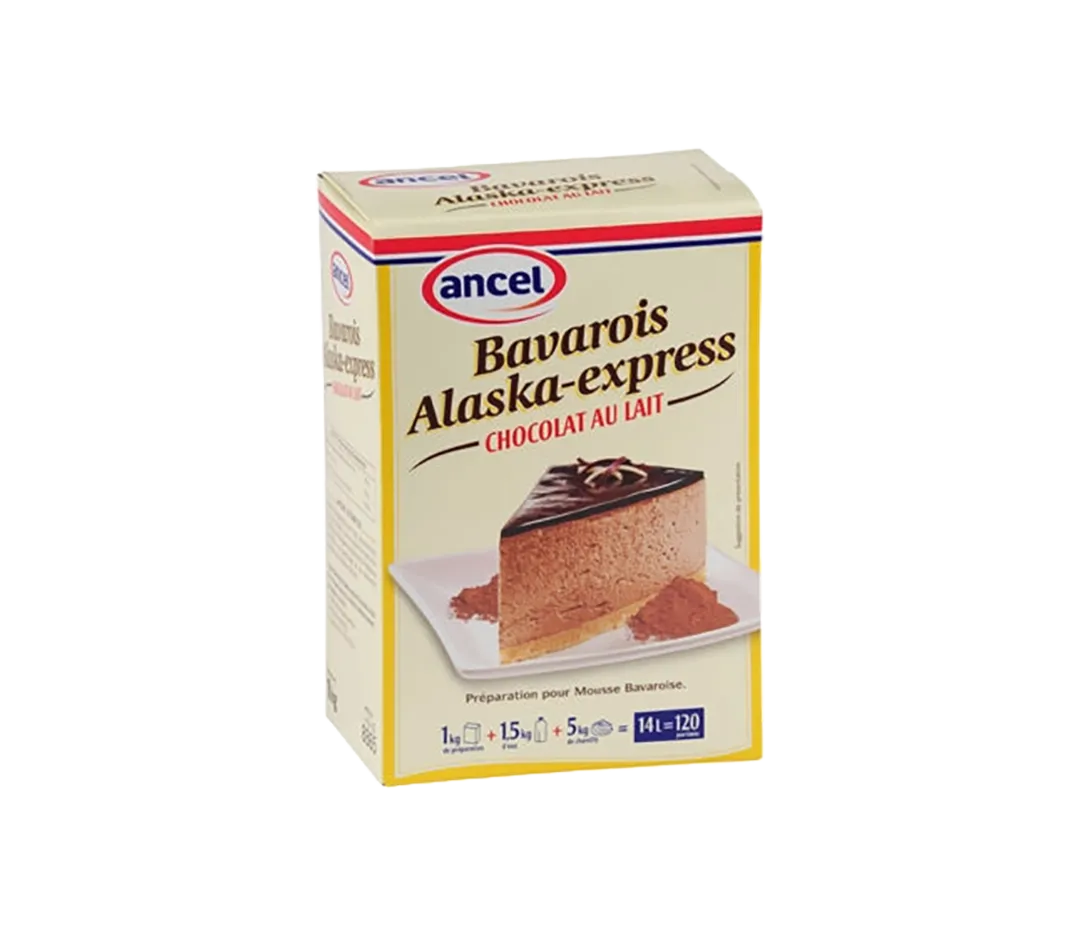 Dosage standard : 200 g de préparation pour Bavarois Alaska-express + 300 g d’eau à 25-30°C + 1000 g de Chantilly sucrée de 50 à 100 g par litre de chantilly.