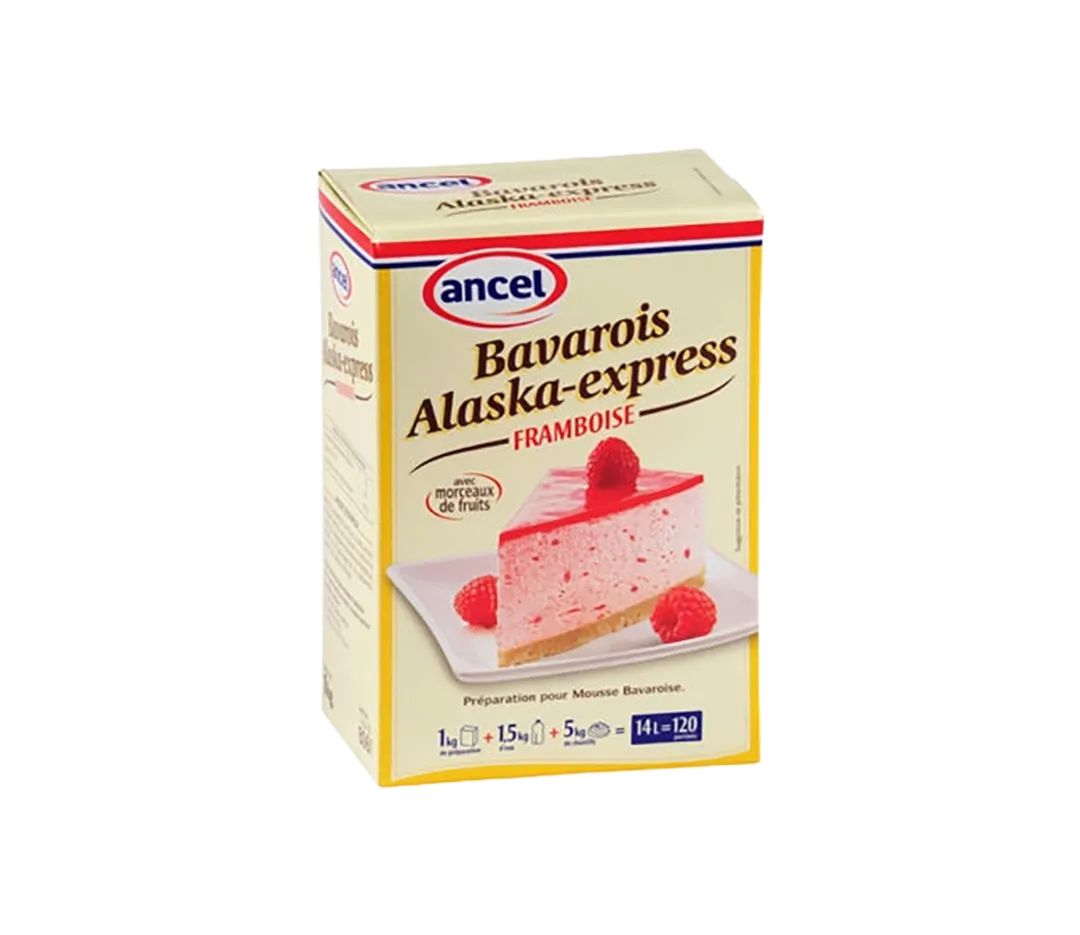 Dosage standard : 200 g de préparation pour Bavarois Alaska-express + 300 g d’eau à 25-30°C + 1000 g de Chantilly sucrée de 50 à 100 g par litre de chantilly.