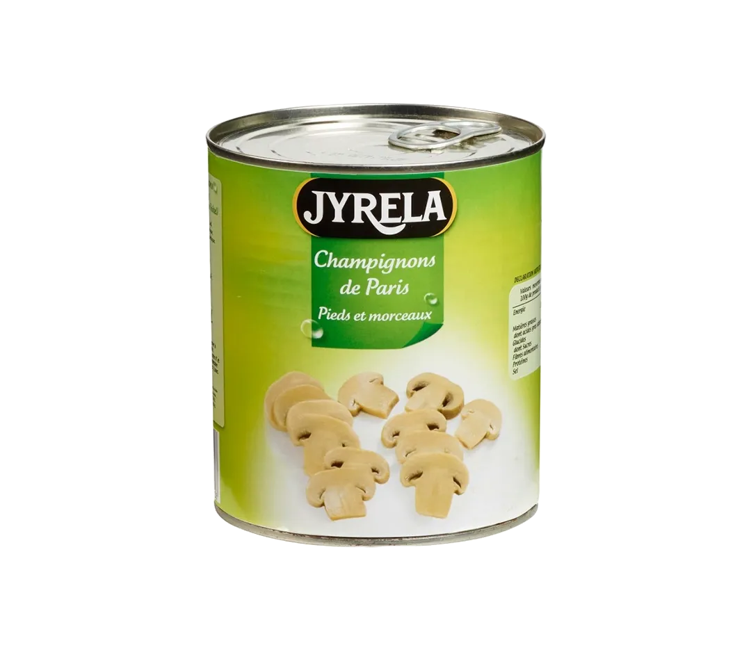Conserve de champignons frais sélectionnés. Après avoir été lavés, blanchis et éventuellement émincés, les champignons sont emballés sous conditions hygiéniques.