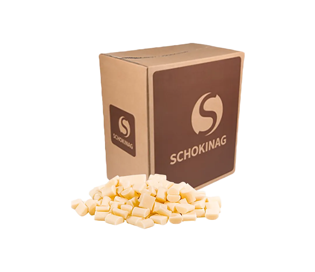 Morceaux de chocolat blanc résistant à la chaleur. Dimensions: 8x8x3,5 mm.