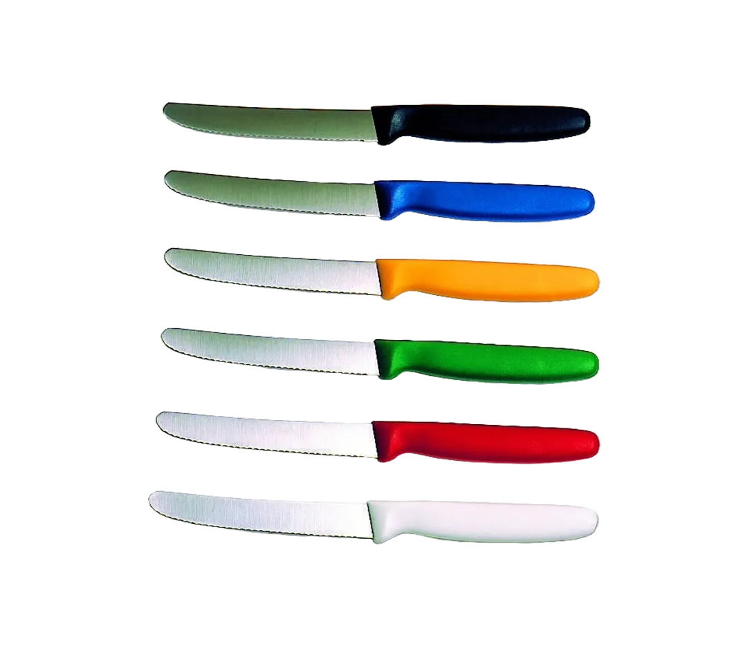 Couteaux à manche surmoulé Ces couteaux fabriqués en Allemagne par Giesser Messer, couteliers depuis 1865, allient la tradition et la qualité. -Lames en acier trempé sous vide : améliore la tenue de coupe. -Acier en chrome/molybdène de première qualité. -Manches anti glisse, non poreux et stérilisables. -Formes de manches adaptées a chaque type de confort d'utilisation. -Livré sous étui plastique.