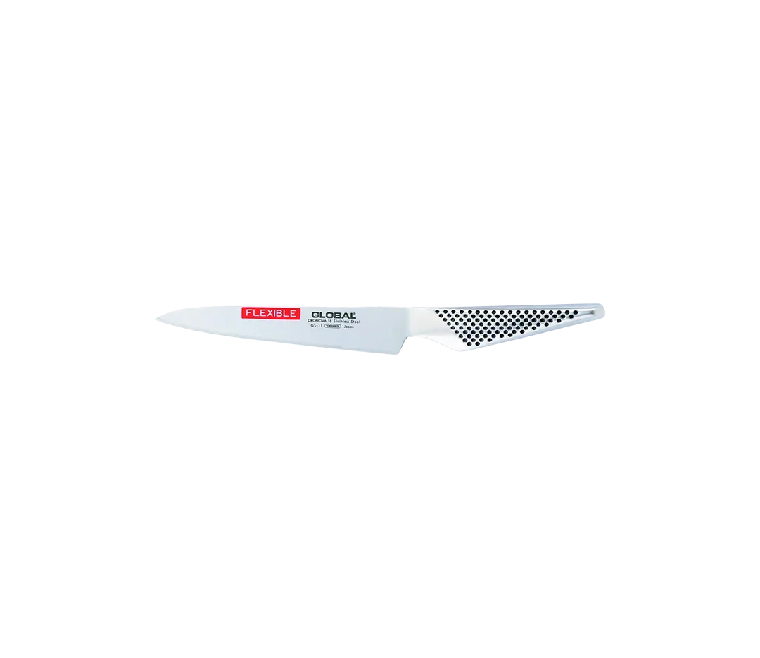 Héritiers de la grande tradition des samouraïs japonais, les couteaux "GLOBAL" sont la référence dans le domaine de la gastronomie. Les lames en acier inoxydable CROMOVA 18 garantissent un tranchant remarquable. Leur design exceptionnel offre un parfait équilibre en main. La gamme proposée est large, chaque forme est spécialement adaptée à un usage particulier. Chaque couteau est livré dans une boîte individuelle avec œillet de suspension.