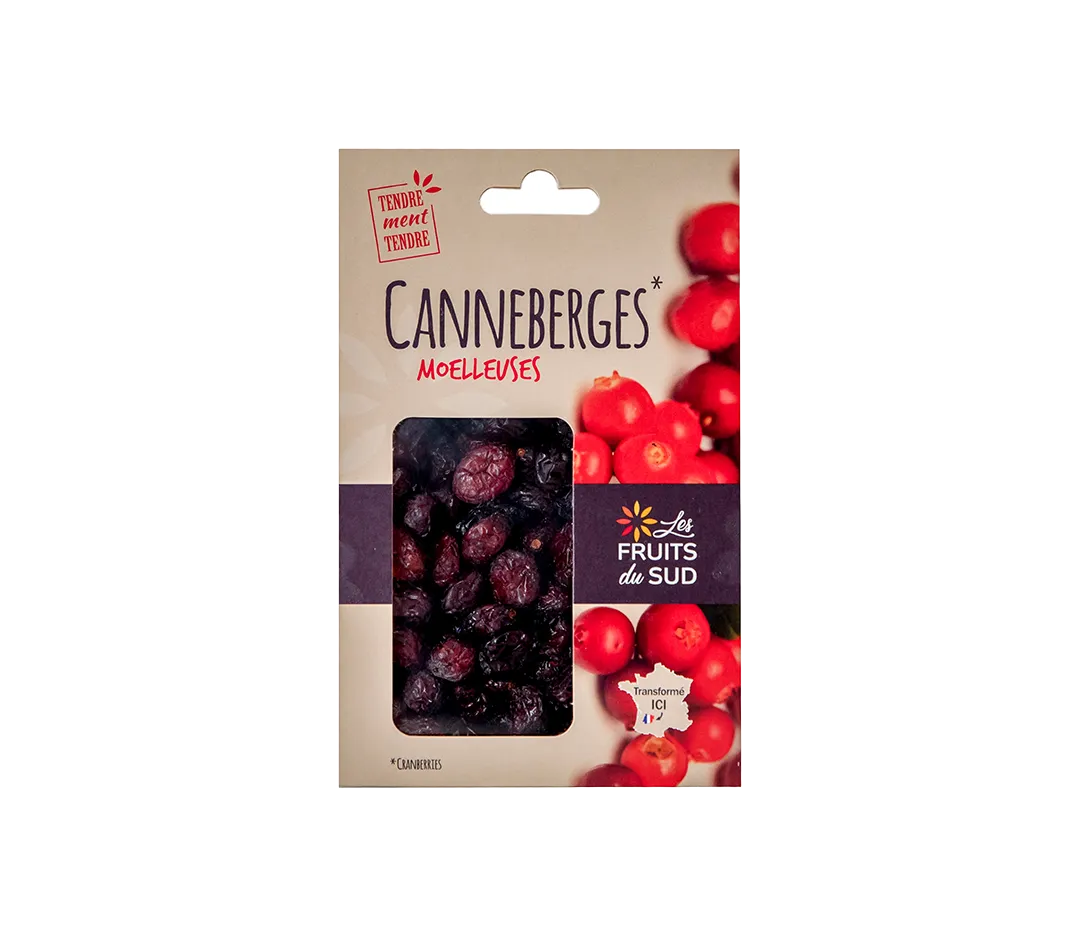 Spécialité de canneberges entières déshydratées, séchées et réhydratées à 40% d’humidité maxi.