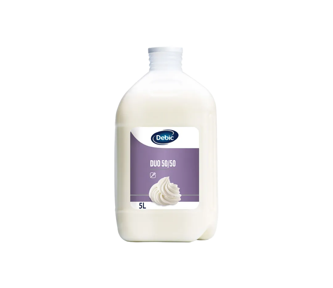 Debic Duo est une combinaison de crème de lait et de matières grasses végétales pour 2 fois plus de performances produit : une tenue fouettée exceptionnelle, un foisonnement supérieur à celui d’une crème classique.