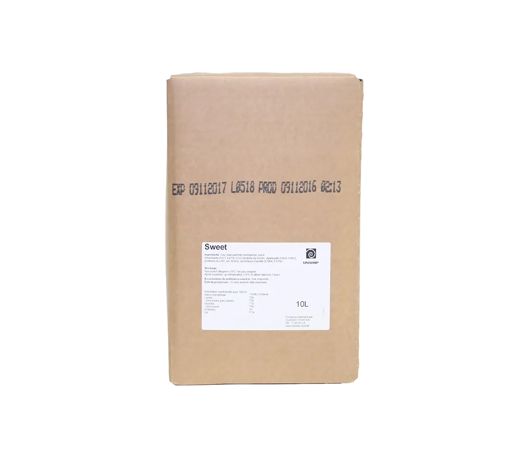 Crème végétale sucrée Uniwhip Sweet, 28% de MG, en outre - 10L