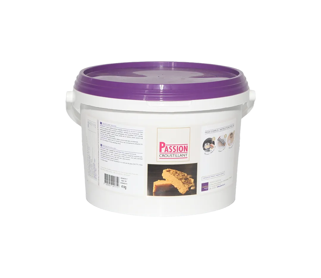 Pâte croustillante au fruit de la passion avec inclusions de biscuits prête à l‘emploi pour insert dans un entremets (type Trianon).