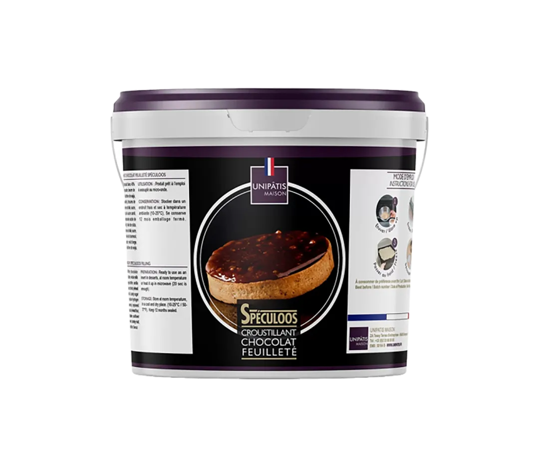 Pâte prête à l‘emploi croustillante au spéculoos et inclusions de biscuits pour insert dans un entremets (type Trianon).