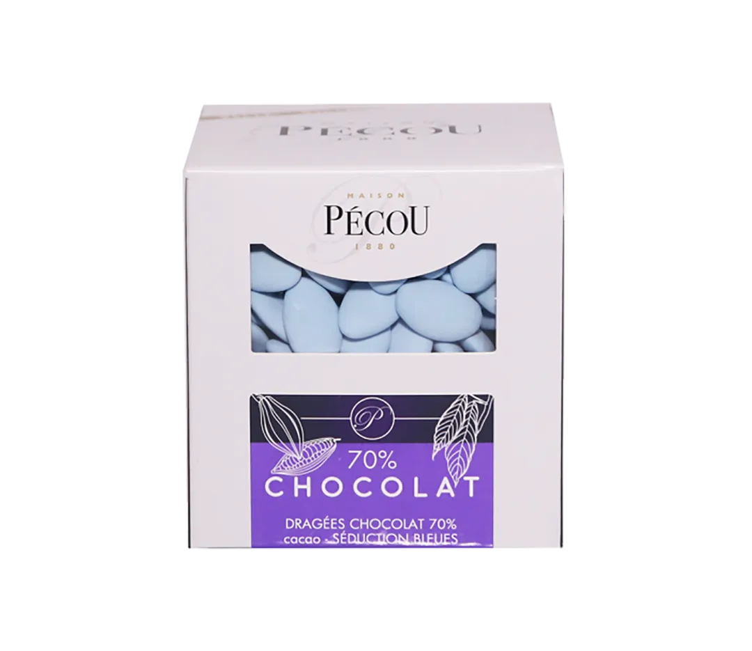Intérieurs chocolat forme amande dragéifiés au sucre, finition mat