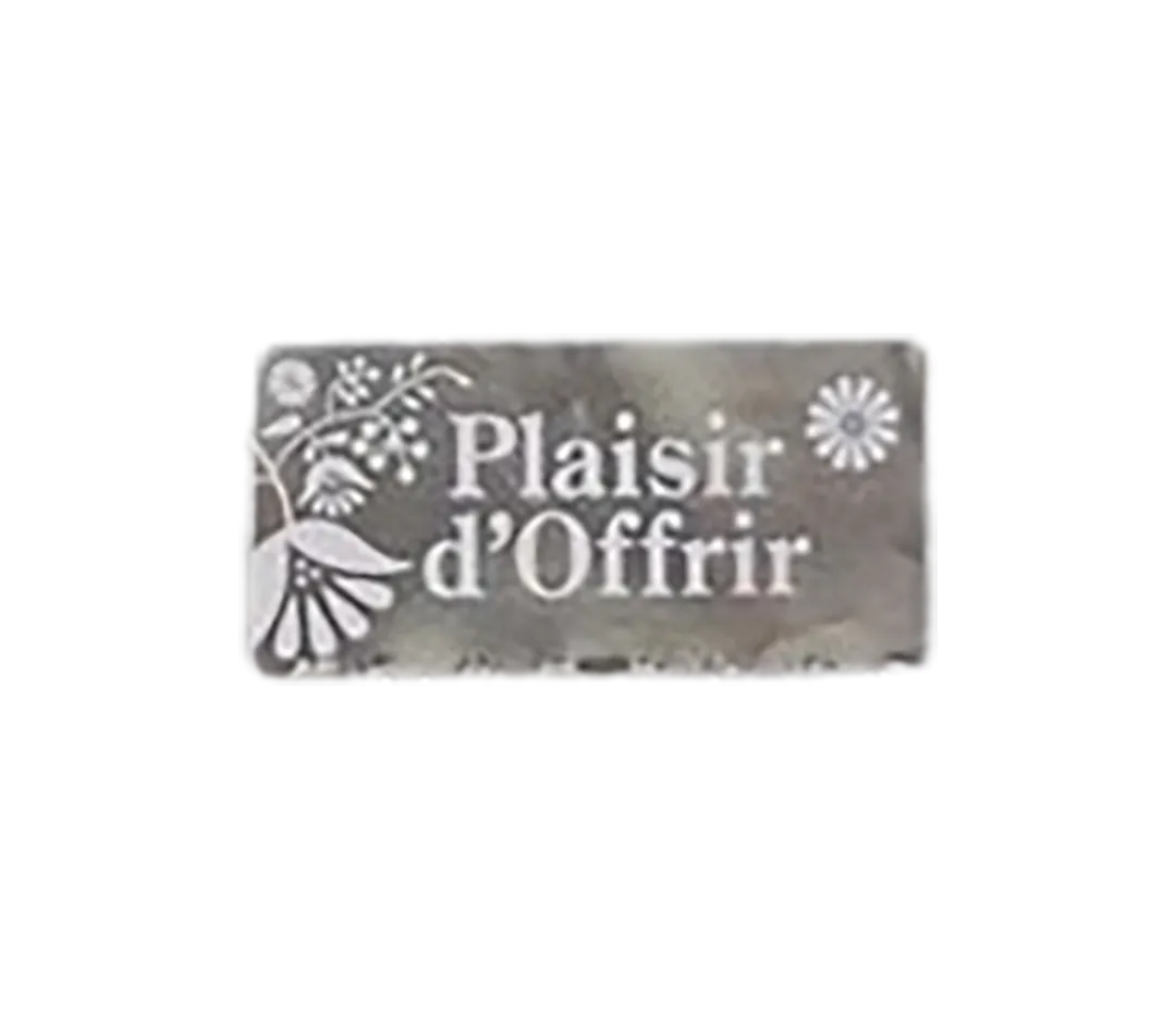 Étiquettes adhésives "plaisir d'offrir" de couleur argentée. Idéal pour finaliser les emballages cadeaux ou personnaliser des objets.