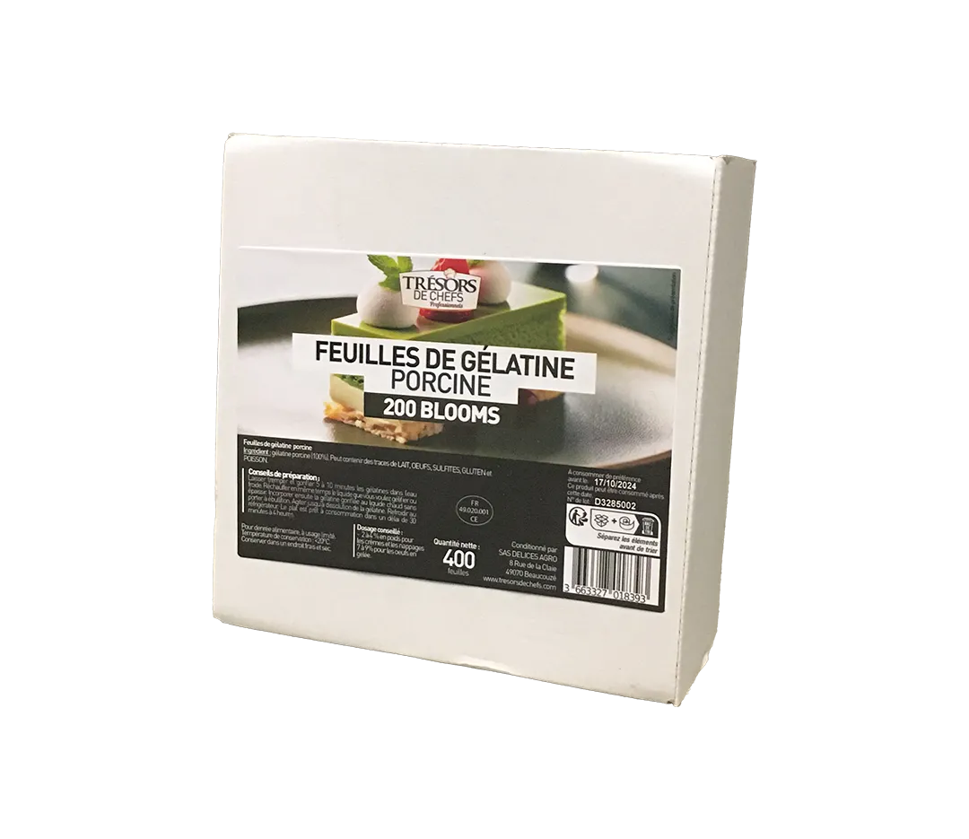 400 feuilles de gélatine porcines 200 bloom - 400 F