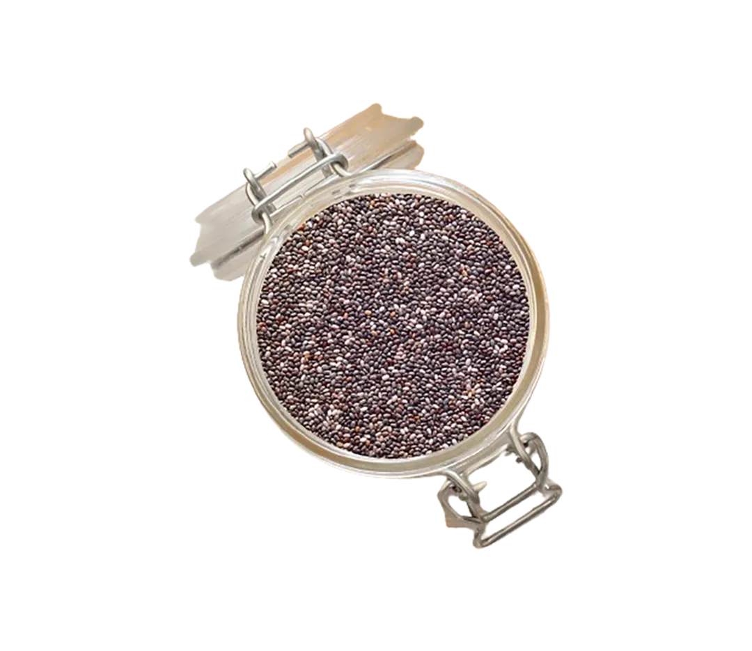 Les graines de chia sont de petites graines noires issues de la plante Salvia hispanica, qui partagent des origines communes avec la menthe. Les peuples Aztèques et Mayas les consommaient pour leur habilité à revitaliser le corps en énergie.