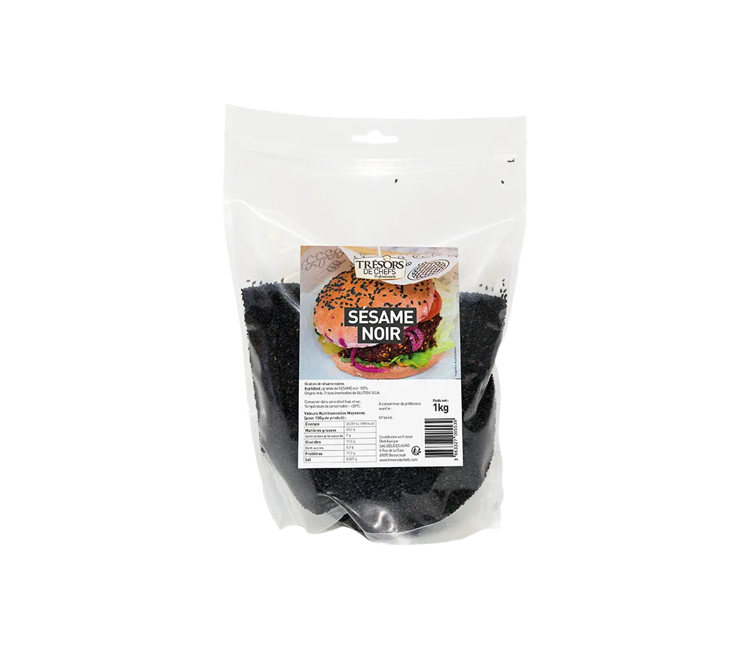 Une variété noire de graines de sésame au goût de noisette, plus doux que les variétés d’autres couleurs.