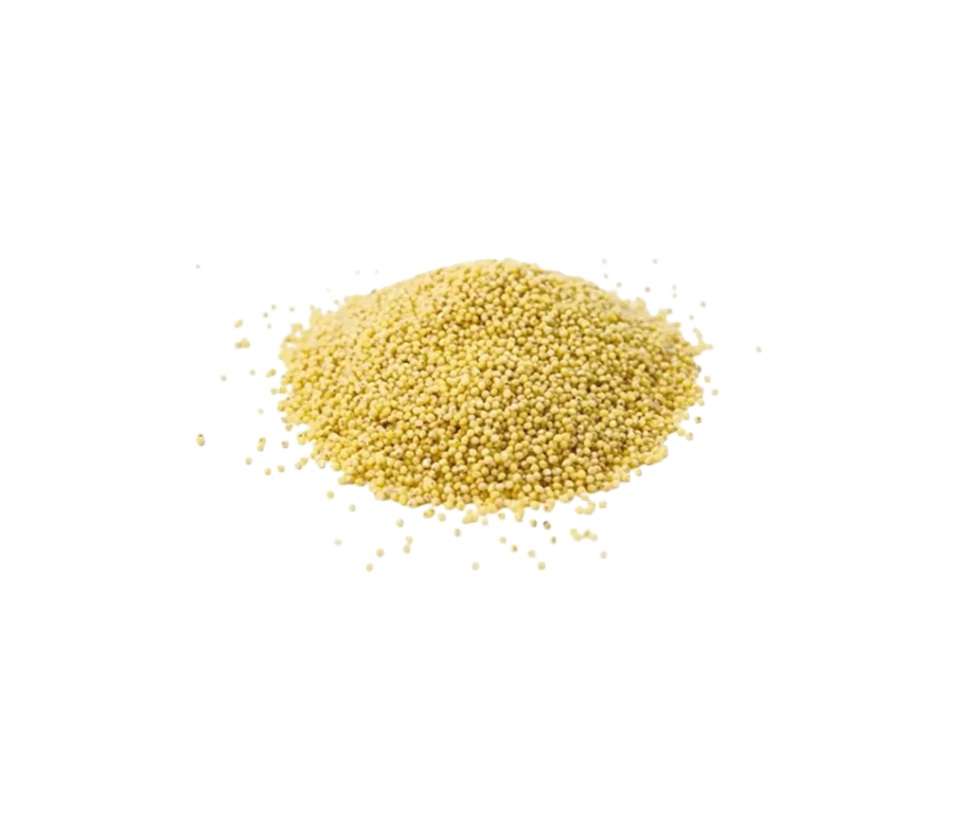 Les graines de millet ont une belle couleur dorée avec une saveur douce et un goût légèrement sucré. Torréfié la graine de millet gagne en saveur noisette. Elle est remarquable dans les préparations boulangères par sa texture croquante qui éclate sous la dent.