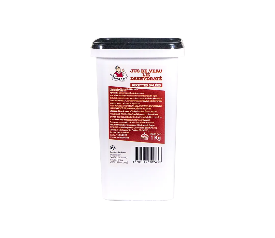 Jus de veau déshydraté servant de base aromatique déstinée à la préparation de fonds et de sauce comme pour la blanquette ou le sauté de veau marengo.
