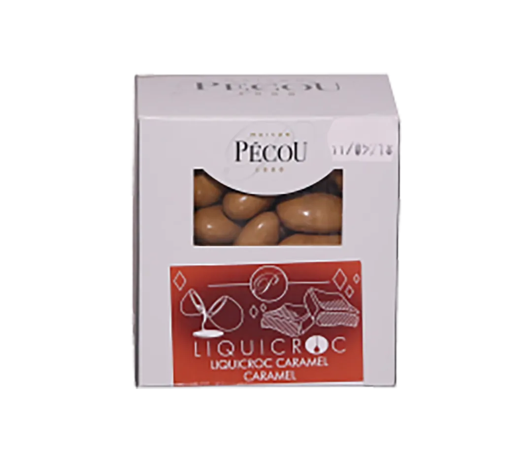 Un cœur au caramel fondant au beurre salé, enrobé de chocolat noir et d’une fine couche de sucre.