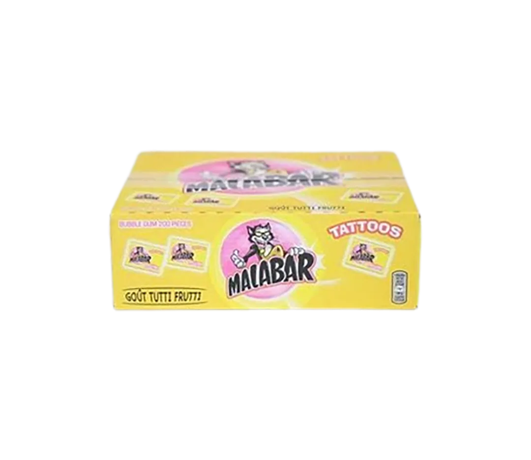 L'inévitable chewing-gum malabar avec son tatouage, au goût tutti frutti.