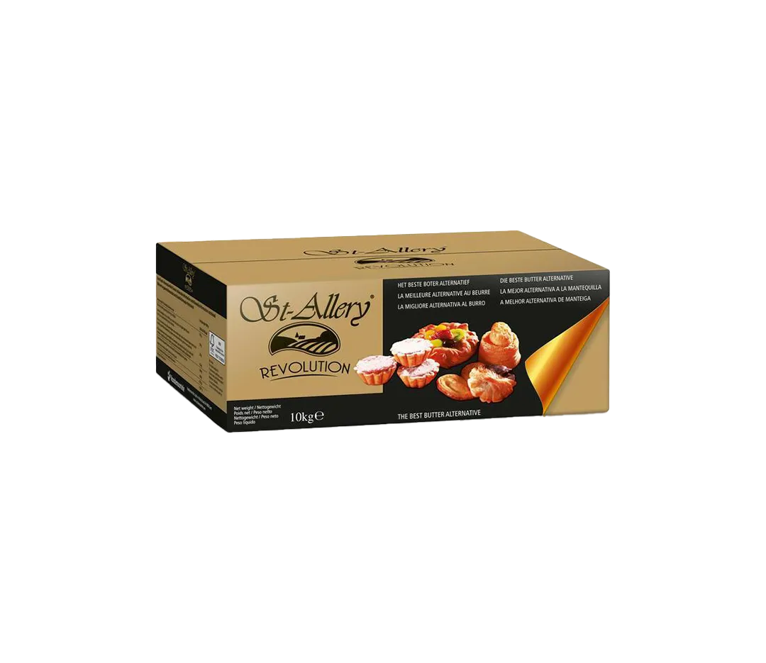 Mélange de matières grasses (80%) végétales avec beurre, St Allery Révolution est un produit multifonctionnel, conseillé pour toutes les applications en viennoiserie, pâtisserie, traiteur :