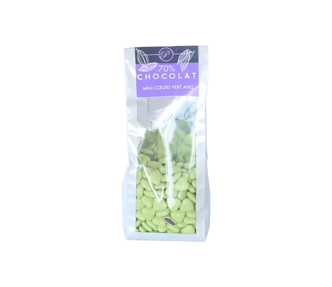 Intérieurs chocolat forme mini cœurs dragéifiés au sucre