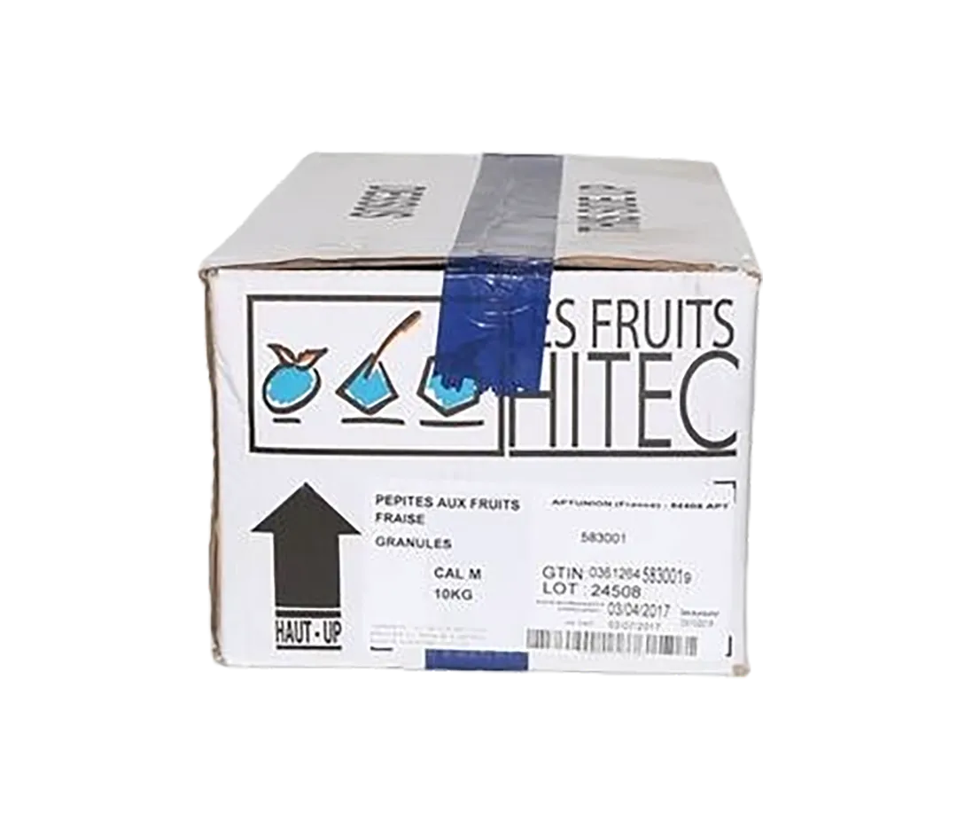 Les pépites aux fruits Aptunion sont des cubes constitués de purées naturelles de fruits retexturées et séchées. Obtenues par un procédé unique, elles sont stables à la cuisson, peuvent s'utiliser en décoration comme en inclusion et ont une faible activité de l'eau. Ces pépites ont une identité unique, une texture souple et une puissance aromatique.