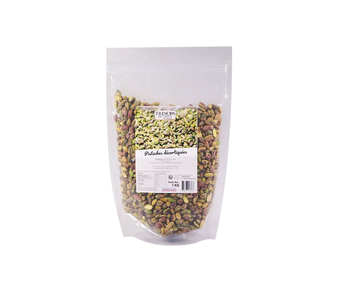 Les pistaches décortiquées sont idéales telles quelles en apéritif et dans vos plats salés et sucrés. Vous pourrez par exemple utiliser les pistaches dans vos salades, pestos, crumbles, cookies salés, etc. En pâtisserie, la pistache est souvent utilisée pour la réalisation de macarons, entremets, fondants ou crèmes glacées. Elle s’associe très bien avec la framboise.