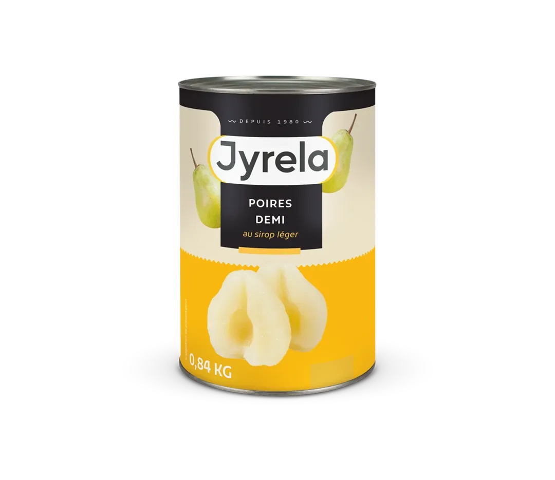 Ces demi-poires en conserve baignent dans un sirop léger. Ce dernier leur permet de conserver une texture moelleuse et un goût sucré et gourmand. Une fois que vous avez utilisé les poires, ce sirop pourra vous servir à parfumer toutes vos préparations !
