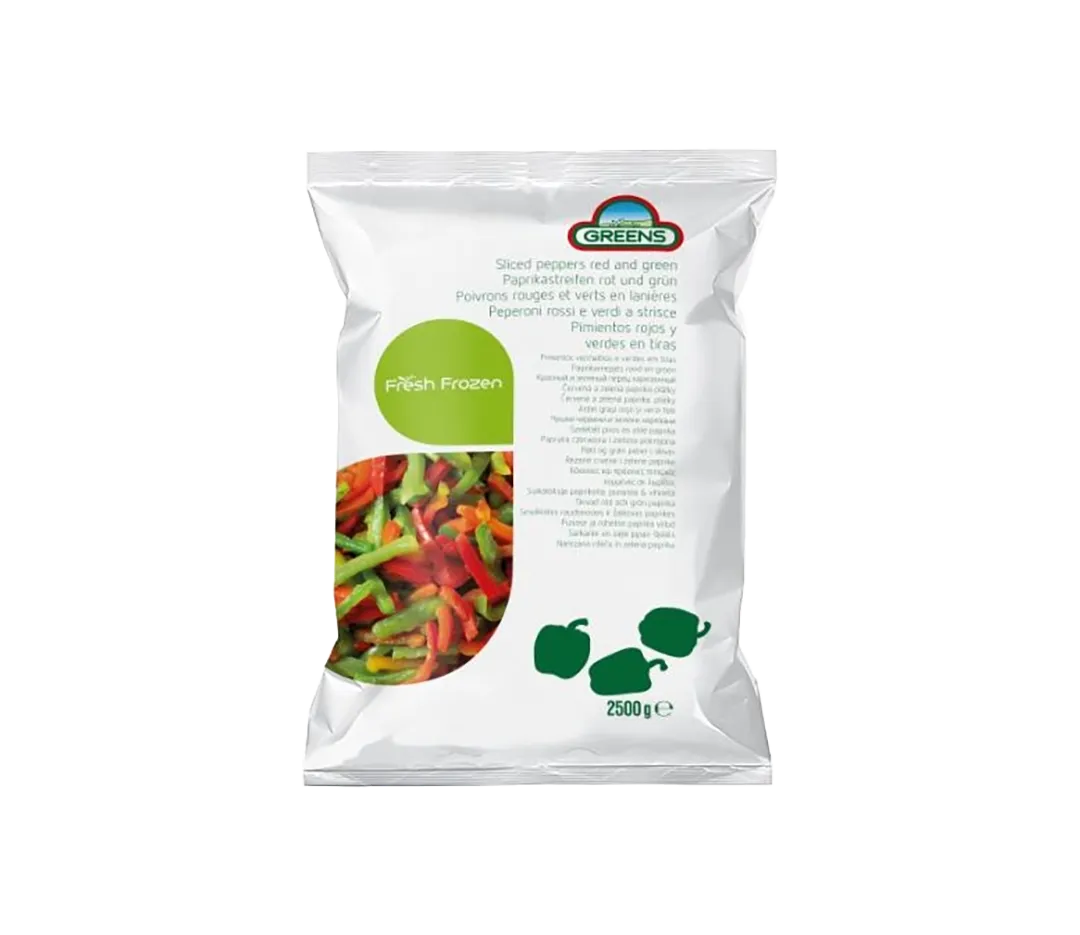 Composé de 55% de poivrons verts et 45% de poivrons rouges.