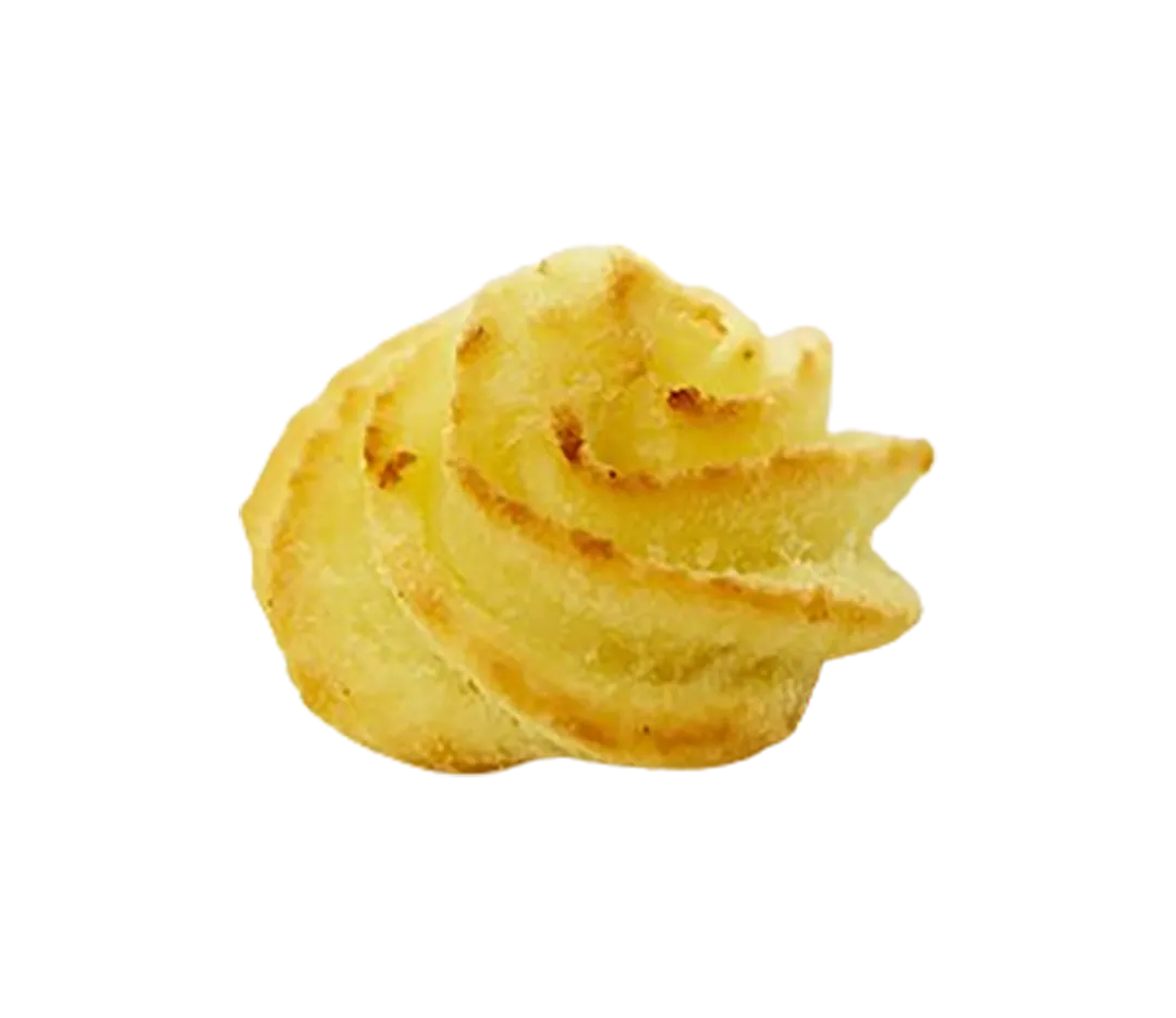 Pommes duchesses à base de purée de pommes de terre, préfrites, surgelées IQF.
