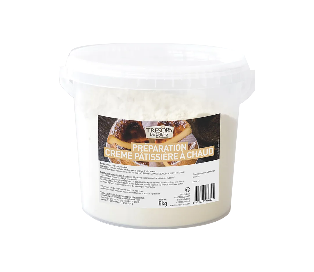 Découvrez notre Préparation Crème Pâtissière à chaud, idéale pour des desserts onctueux et savoureux. Facile à utiliser, elle garantit une texture parfaite et un goût authentique. Une solution rapide et fiable pour les professionnels exigeants.