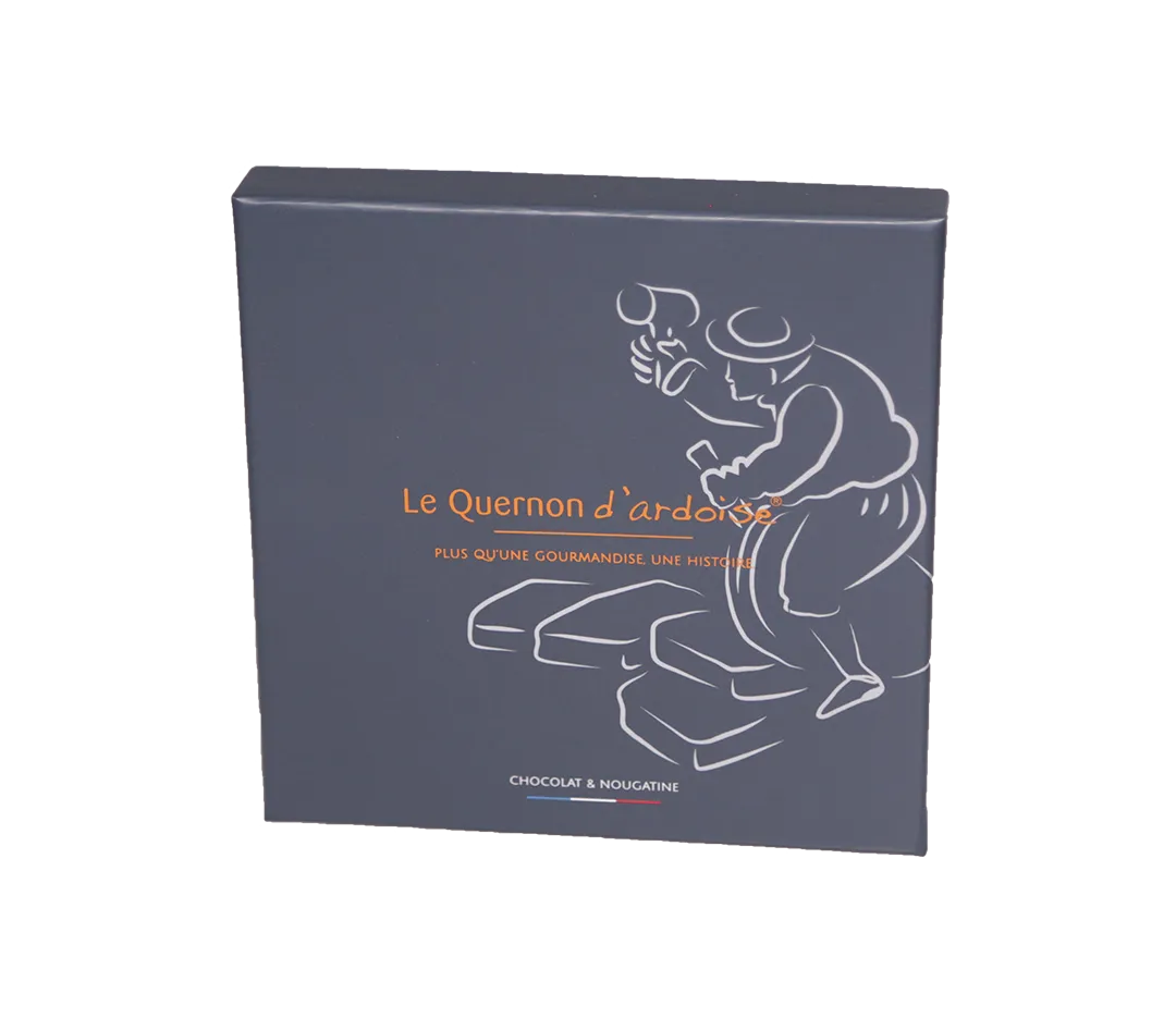 Spécialité angevine, le Quernon d'Ardoise rend hommage aux mines d'ardoise, en imitant dans sa forme et sa couleur, les ardoises qui couvrent les maisons de la ville. Croquant et fondant, le Quernon d'Ardoise vous emmène sur le toit de la gourmandise.
