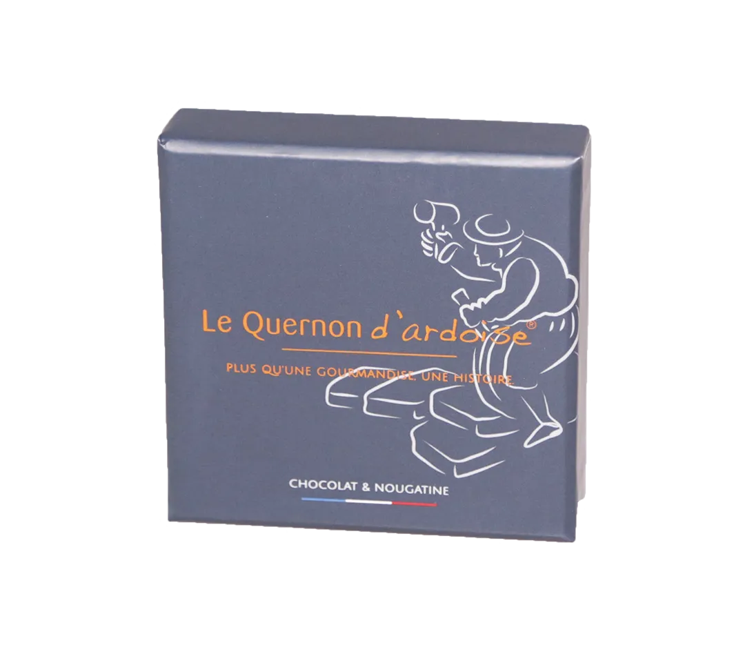 Spécialité angevine, le Quernon d'Ardoise rend hommage aux mines d'ardoise, en imitant dans sa forme et sa couleur, les ardoises qui couvrent les maisons de la ville. Croquant et fondant, le Quernon d'Ardoise vous emmène sur le toit de la gourmandise.