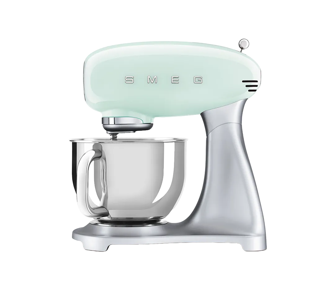 Performance et élégance décrivent au mieux le design du robot sur socle de la gamme "Années 50", un outil fonctionnel qui apporte raffinement et style dans la cuisine.
