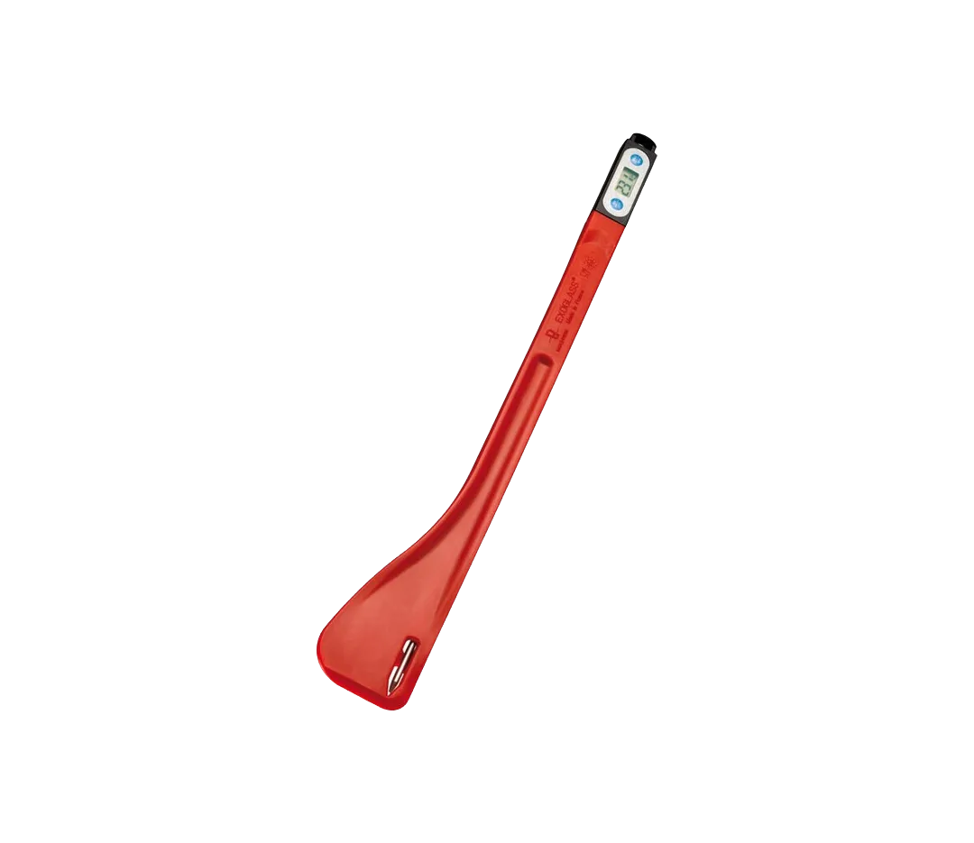 spatule-thermomètre digital rigide 38.5 cmManche en matériau composite Exoglass® résistant à +220°CThermomètre amovible -20 °C à +200 °C , précision 0,1 °C, fiabilité 1 °C2 outils en 1Permet de contrôler la température des préparations pendant leur cuissonThermomètre étanche aux projections d'eauLe manche passe au lave-vaisselle