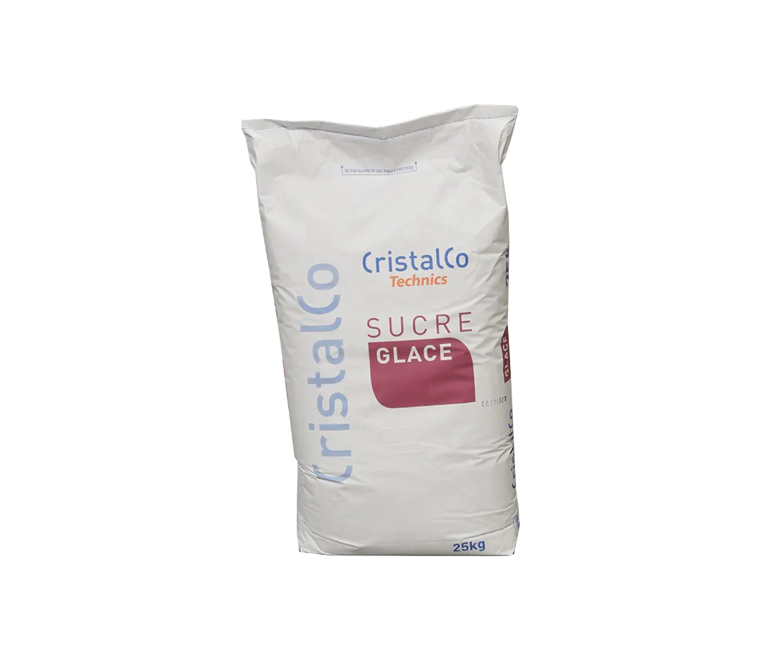 Le SUCRE GLACE est obtenu par broyage d'un sucre blanc de qualité N°2 définie par la réglementation. Il renferme une faible proportion de fécule de pomme de terre qui joue un rôle anti-mottant et permet de limiter les prises en masse. Le sucre utilisé est du saccharose présent naturellement dans la betterave sucrière et dans la canne à sucre.