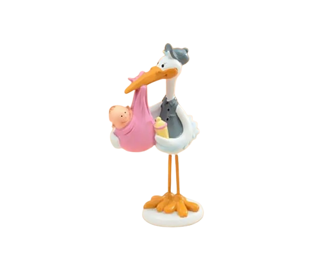 Sujet cigogne et bébé - 15.5 cm