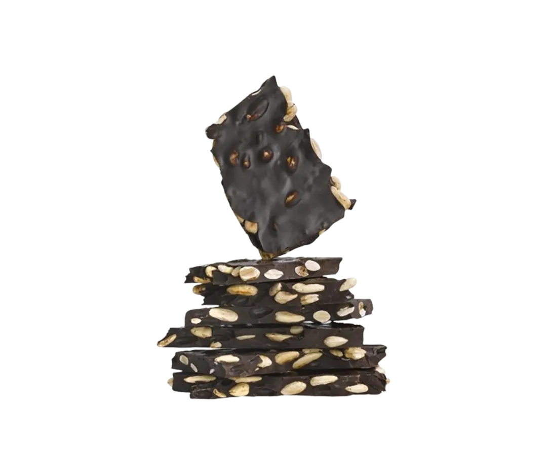 Chocolat noir coulé sur des amandes, noisettes, pistaches