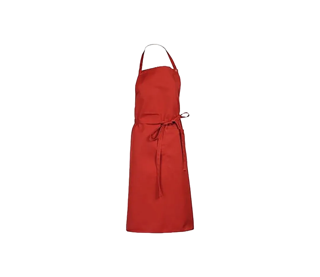 1 poche poitrine stylo1 poche basse côté gaucheTour de cou réglable par boutons pressionsCeinture tissu Hauteur : 90 cm - largeur : 70 cm - longueur ceinture : 110 cm