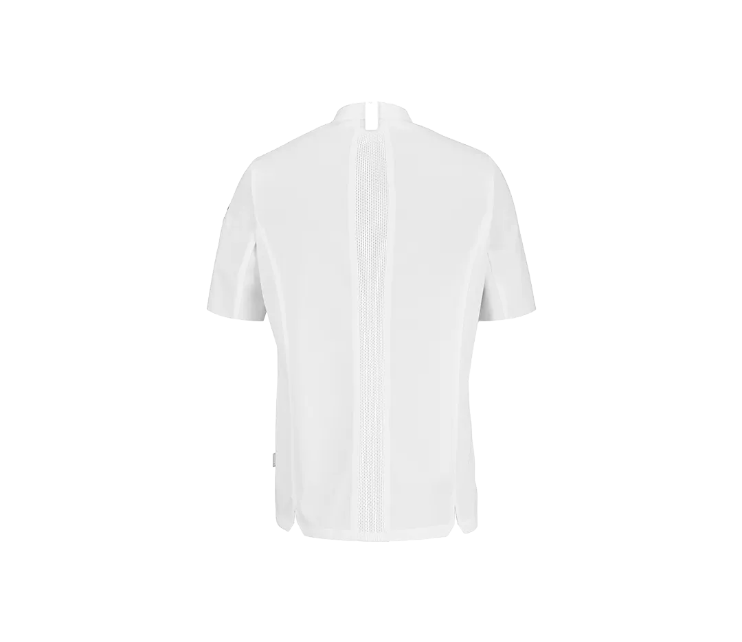 La veste de cuisine homme LEMONGRASS conçu pour accompagner les professionnels de la gastronomie dans leur bien-être et leur performance. Cette tenue de cuisine est composée d’un tissu Sergé 50 % coton 50 % polyester et d’une maille 79 % polyester 21 % coton. Les œillets d’aération brodés renforcent la respirabilité des empiècements en maille pour un confort de travail optimal. La veste de cuisine LEMONGRASS dispose également d’une fermeture asymétrique, d’un petit col officier et d’une poche poitrine plaquée. Existe en version manches courtes, et en version veste de cuisine femme NUTMEG.